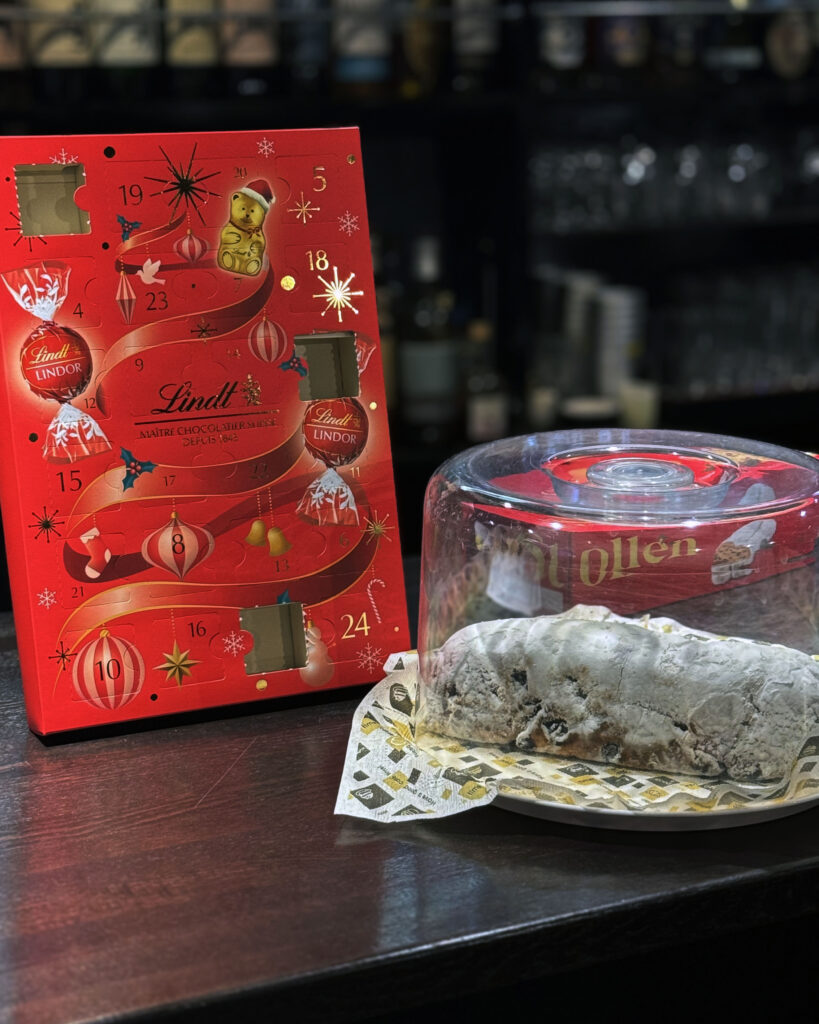 アドベントカレンダーが3日目まで開いて、ケーキドームにはシュトーレンがひとつ。